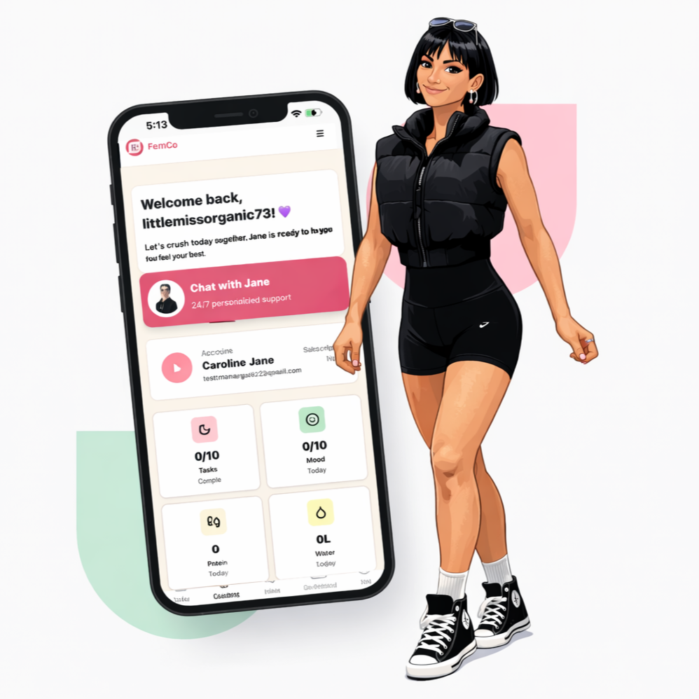 Menopause.AI by FemCo is your intelligent, supportive guide through all stages of menopause, medically induced menopause, and hormonal changes — helping you understand your body, manage symptoms, and rebuild strength, confidence, and balance on your terms.